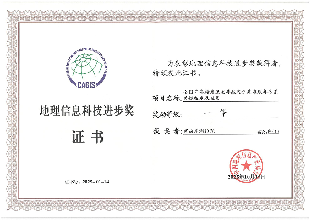 河南省测绘院荣获2025中国地理信息科技进步奖一等奖